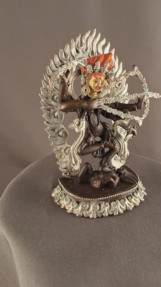 Tibetan Buddhism Goddess Kurukulla Dakini Jogini Silver Oxide Copper Statue Nepal