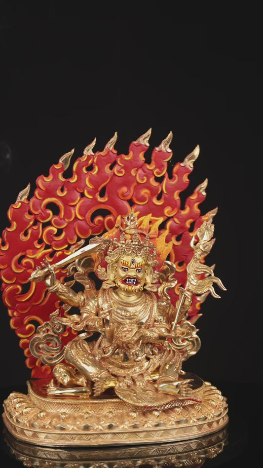 Tibetan Buddhism Gold Face Paint 4 Arms Lord Mahakala Bhairav Gold Plated Statue Figure Nepal free