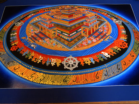 Tibetan Buddhism Ritual Kalachakra Mandala Tantra Mandala 3D Thangka Hand Painting Art Nepal free blue