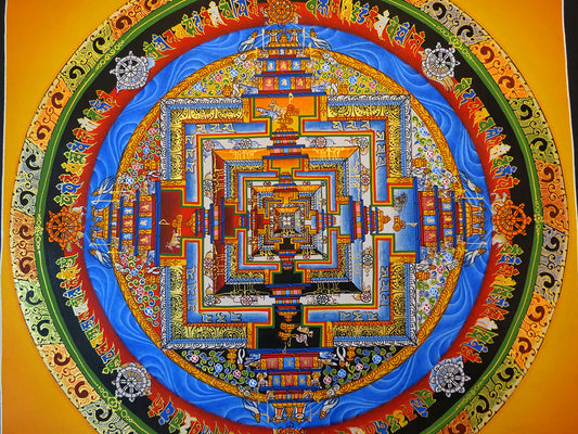 Tibetan Buddhism Ritual Kalachakra Mandala Rainbow Canvas Cloth Thangka Hand Painting Art Nepal free