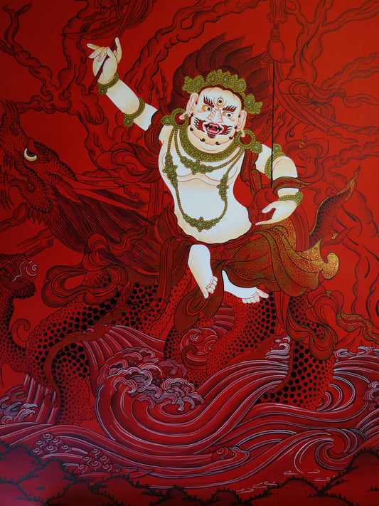 Tibetan Buddhism Wealth of God Dragon Jambhala Dzambala Namtose Handmade Canvas Cloth Hand Paint Thangka free
