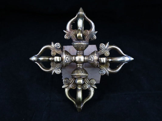 Tibetan Buddhism Ritual Brass Double Dorje/Vajra Vishwa Vajra Thunderbolt Handmade Nepal free