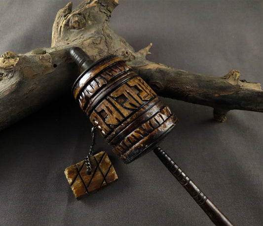 Vintage Tibetan Buddhist Bone Prayer Wheel, Om Mani Padme Hum Mantra, Hand Craved Water Buffalo Bone Prayer Wheel