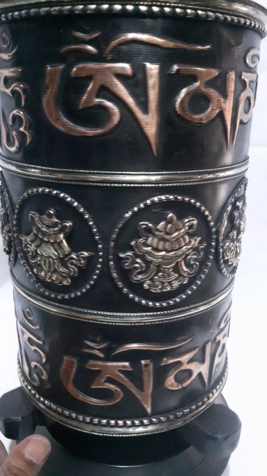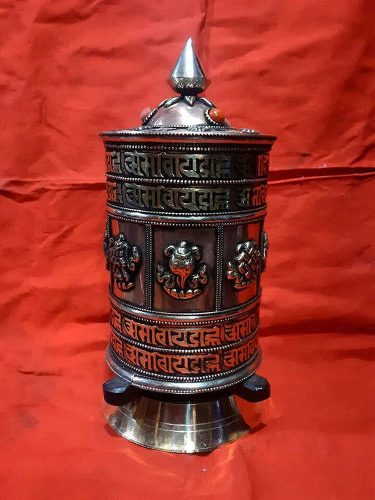 Tibetan Buddhism Copper Prayer Wheel - Om Mani Padme Hum Mantra, Ritual 8 Auspicious lucky Signs