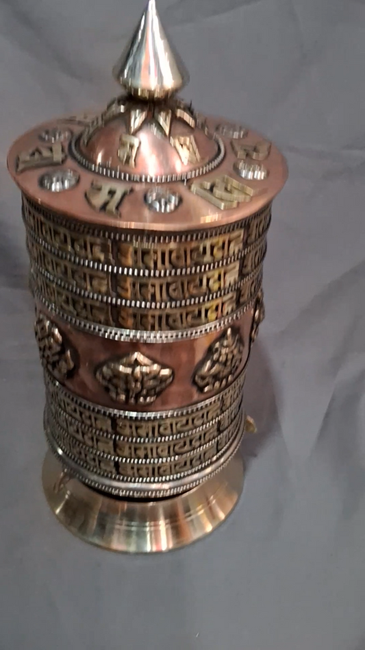 Tibetan Buddhism Copper Brass Prayer Wheel - Om Mani Padme Hum Mantra
