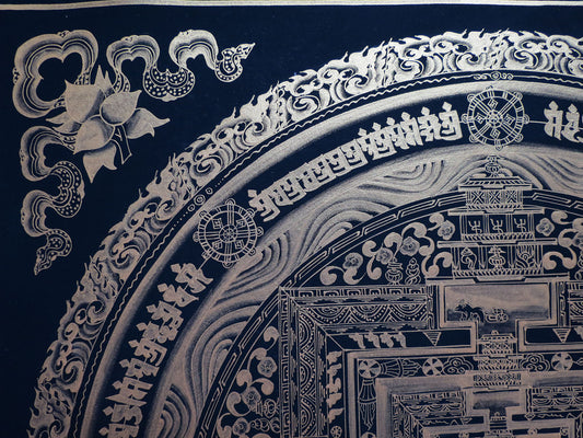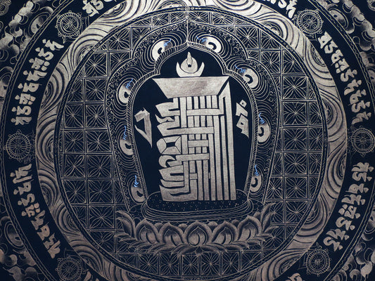 Tibetan Buddhism Ritual Kalachakra Mandala Tantra Thangka Silver Color Hand Painting Art Black free