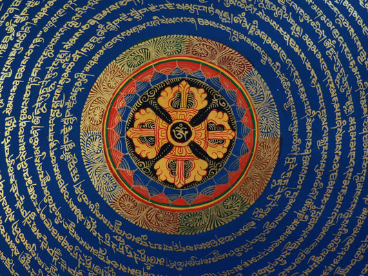 Tibetan Double Dorje Thangka Painting: Om Mani Padme Hum Mantra Mandala Art Nepal free
