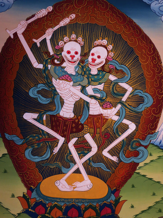 Tibetan Buddhism Scary Wrathful Protecter Deities Chitipati Citipati Two Skeleton Painting Thangka Art Nepal free