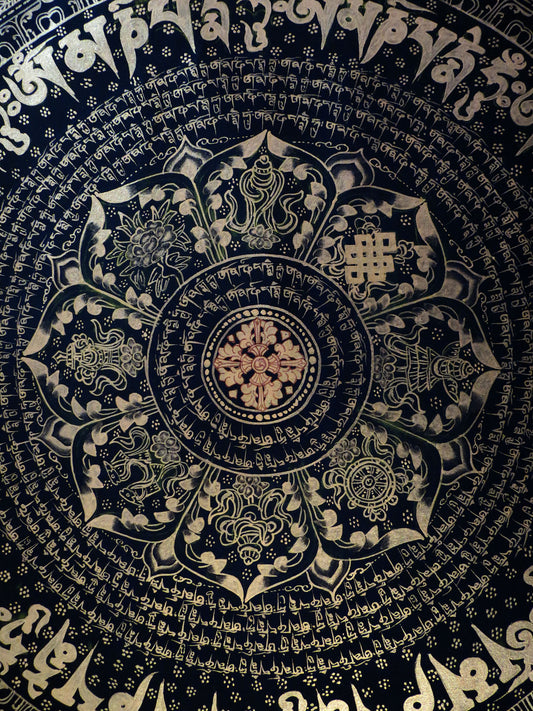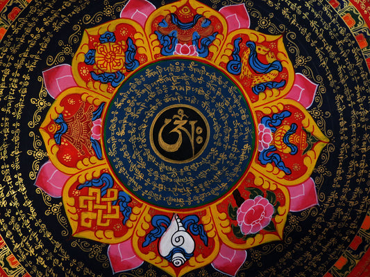 Tibetan Buddhism Om Mani Padme Hum Mantra Mandala Lama Handwritten Painting Thangka Art Nepal free black