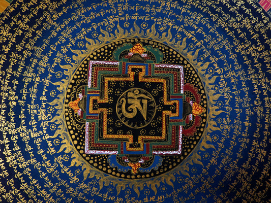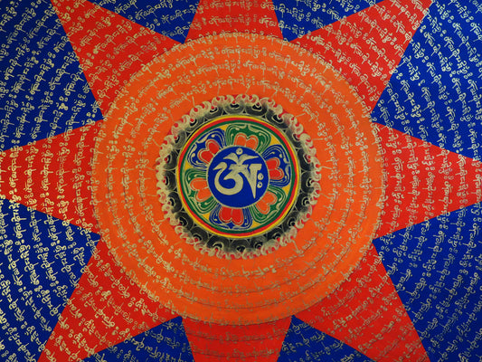 Tibetan Buddhism Om Mani Padme Hum Mantra Mandala Star Lama Handwritten Painting Thangka Art Nepal free
