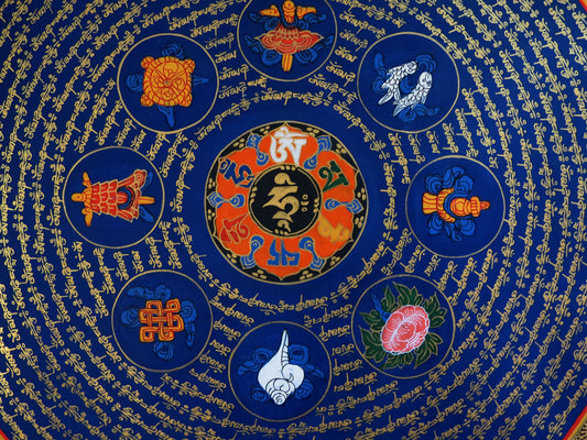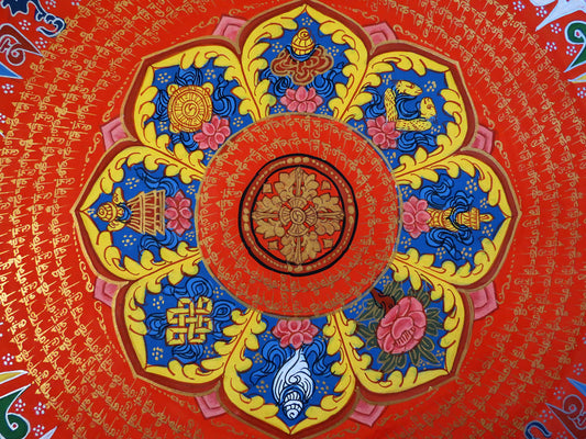 Tibetan Buddhism Om Mani Padme Hum Mantra Mandala 8 Auspicious Lucky Sign Lama Handwritten Painting Thangka Art Nepal free