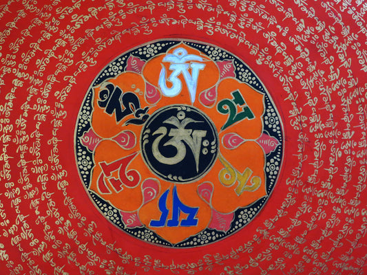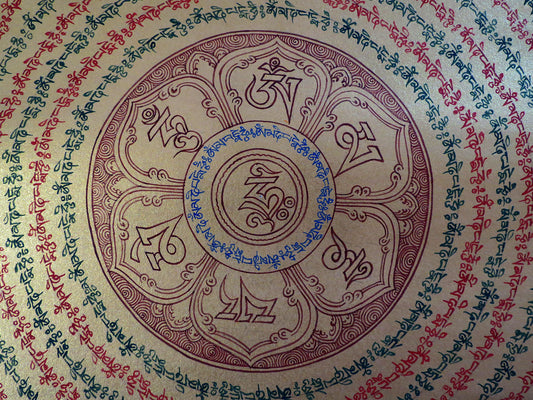 Tibetan Buddhism Om Mani Padme Hum Mantra Mandala Lama Handwritten Painting Thangka Art Nepal free