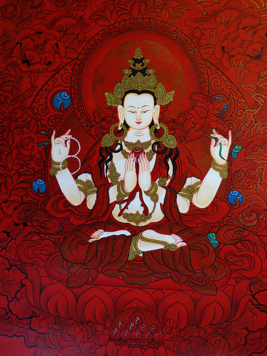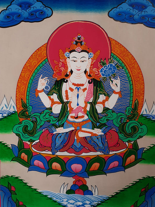Tibetan Buddhism Lord Chenrezig Avalokiteshvara Khacheri Bodhisattva Lama Hand Painting Thangka Art free