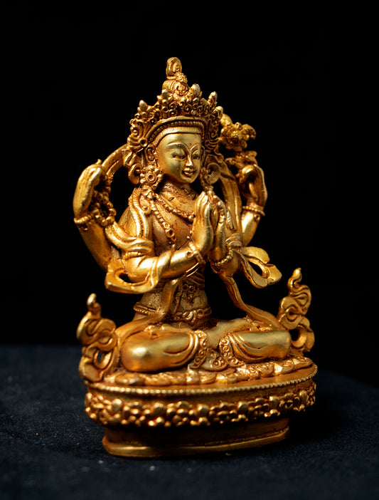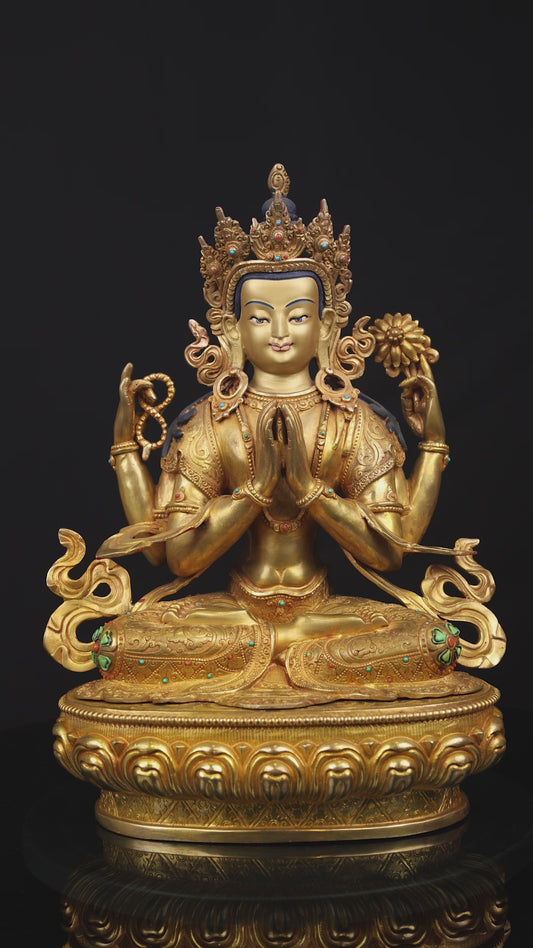 24KGold Face Tibetan Buddhism Lord Chenrezig Khacheri Gold Plated Copper Statue Sculpture Nepal free