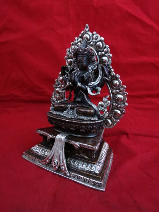 Tibetan Buddhism Lord Chenrezig Khacheri Silver Oxide Copper Statue Figure Nepal