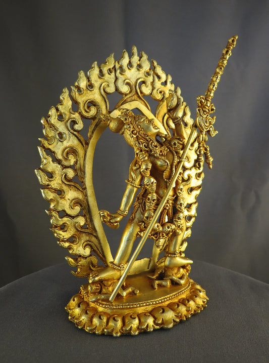 Tibetan Buddhism 24K Gold Face Wrathful God Yamantaka Gold Plated Pure Copper Statue Sculpture Nepal free