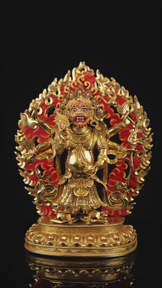 Tibetan Buddhism Rare Six Hand White Mahakala 24K Gold Face Paint Pure Copper Statue Figure Nepal free