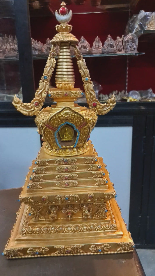 Tibetan Buddhism Temple 12" Gold Plated Pure Copper Stupa Pagoda Nepal free