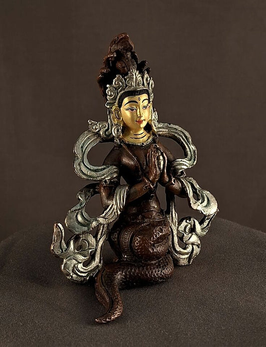 Tibetan Buddhism Goddess Naga kanya Queen Gold Face Copper Silver Oxide Statue Sculpture Figure Nepal