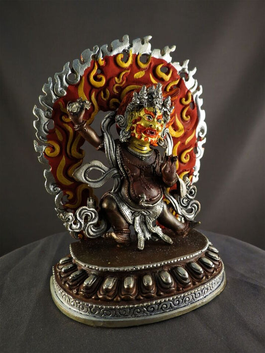 Tibetan Buddhism Protector Lord Vajrapani Chana Dorji Copper Silver Oxide Figure Statue Sculpture Nepal