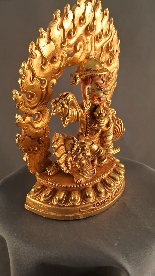 Tibetan Buddhism Gold Face Dorje Drolo Lhamo Lapka Gold Plated Copper Statue Figure Nepal