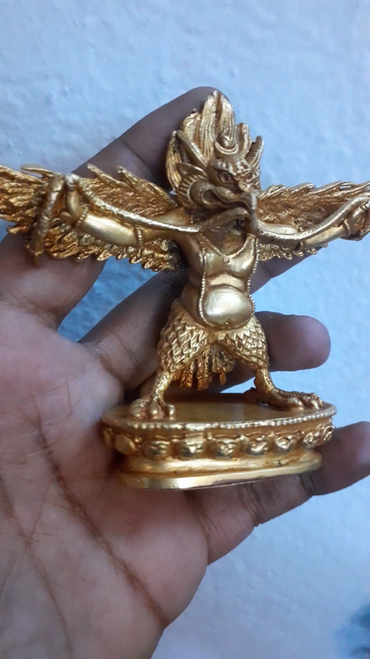 Tibetan Buddhism Gold Plated Garuda Bantej Eagle Copper Statue Sculpture Figure Nepal free