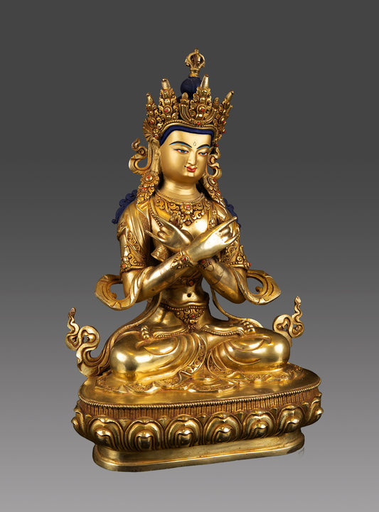 Tibetan Buddhism Lord Vajradhara 24K Gold Face Pure Copper Gold Plated Statue Sculpture Figure Nepal free