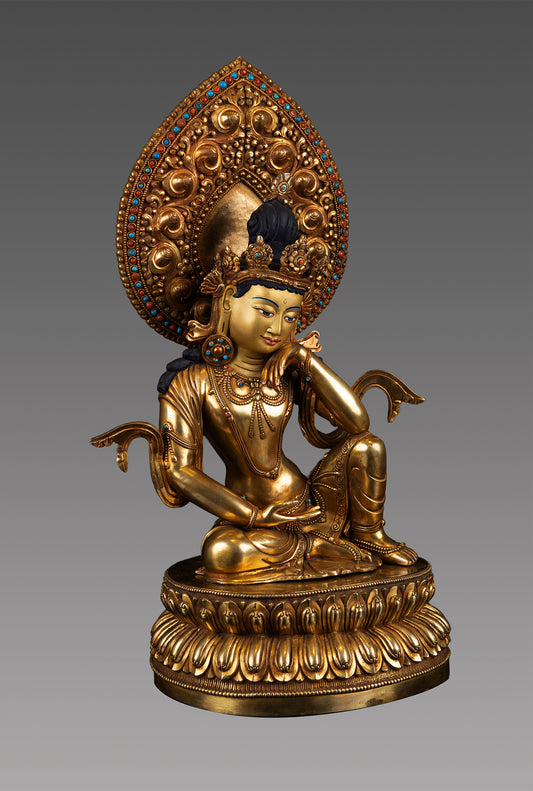 We also feature sacred Tibetan icons like Manjushri, the Bodhisattva of wisdom. Known for holding the flaming sword that cuts through ignorance and a book of wisdom resting on a lotus, Manjushri statues are symbols of intellect, insight, and clarity. These Tibetan treasures are perfect for those seeking a deeper connection with Himalayan spirituality or looking to enhance their space with profound cultural and symbolic value.