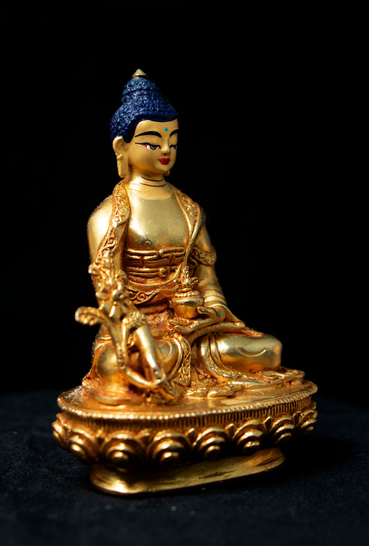 Tibetan Buddhism Gold Face Hand Painting Lord Medicine Buddha Gold Plated Copper Statue Sculpture Figure Nepal free