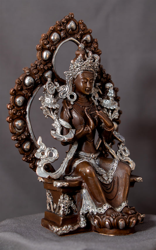 Tibetan Buddhism Lord Maitreya Buddha Silver Oxide Copper Statue Sculpture Figure Nepal free