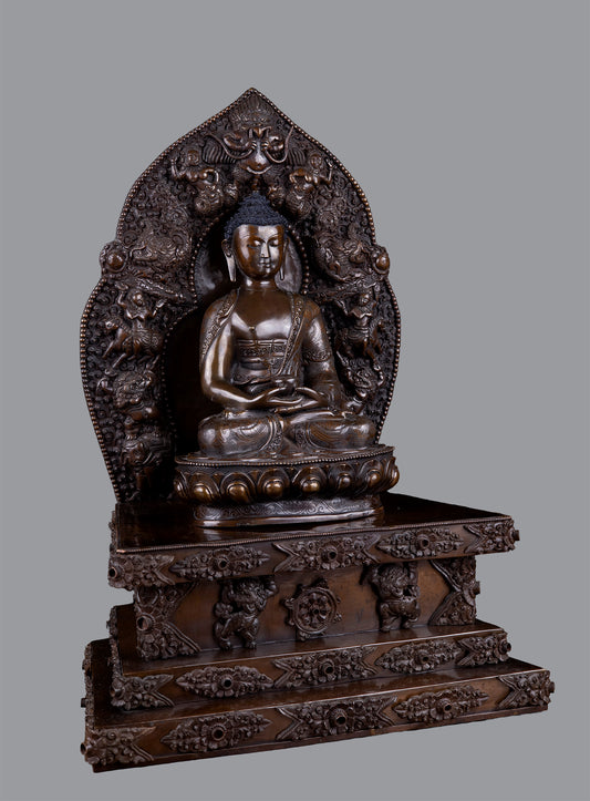 Buddhism Hand Craved Lord Shakyamuni Buddha Pure Copper Oxide Statue Sculpture Nepal free
