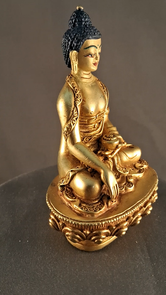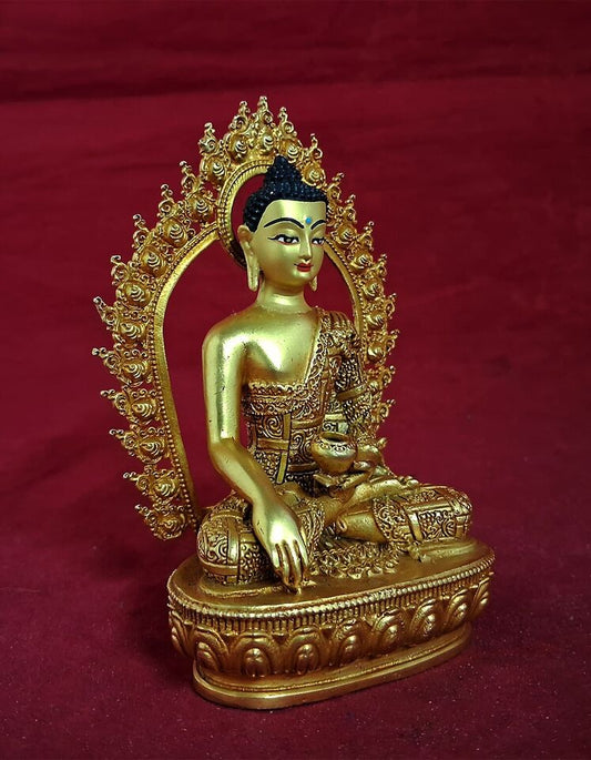 Hand Paint Gold Face Lord Shakyamuni Buddha Statue Gold Plated Statue Figure Nepal