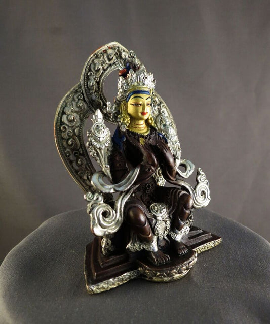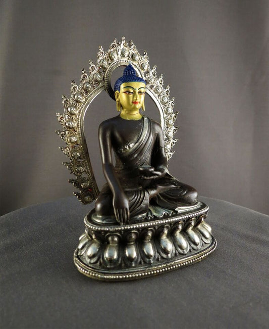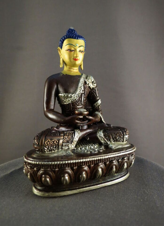 Lord Akshobhya Buddha Gold Face Hand Paint Silver Oxide Copper Statue Sculpture Figure Nepal