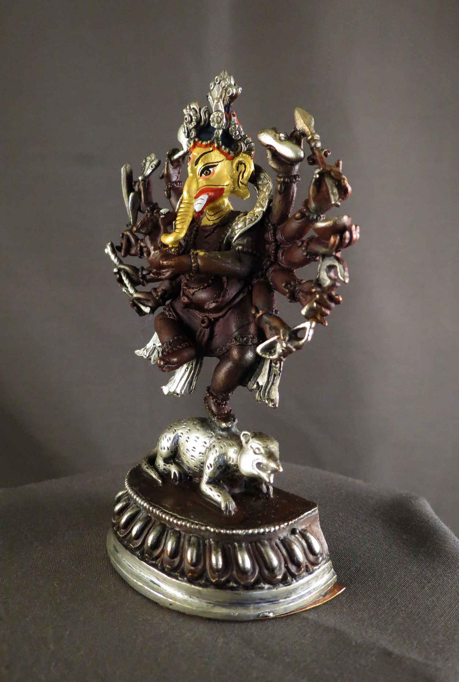 12 Hands Dancing Gold Face Hand Painting Lord Ganesha Copper Plated Statue Sculpture Figure free