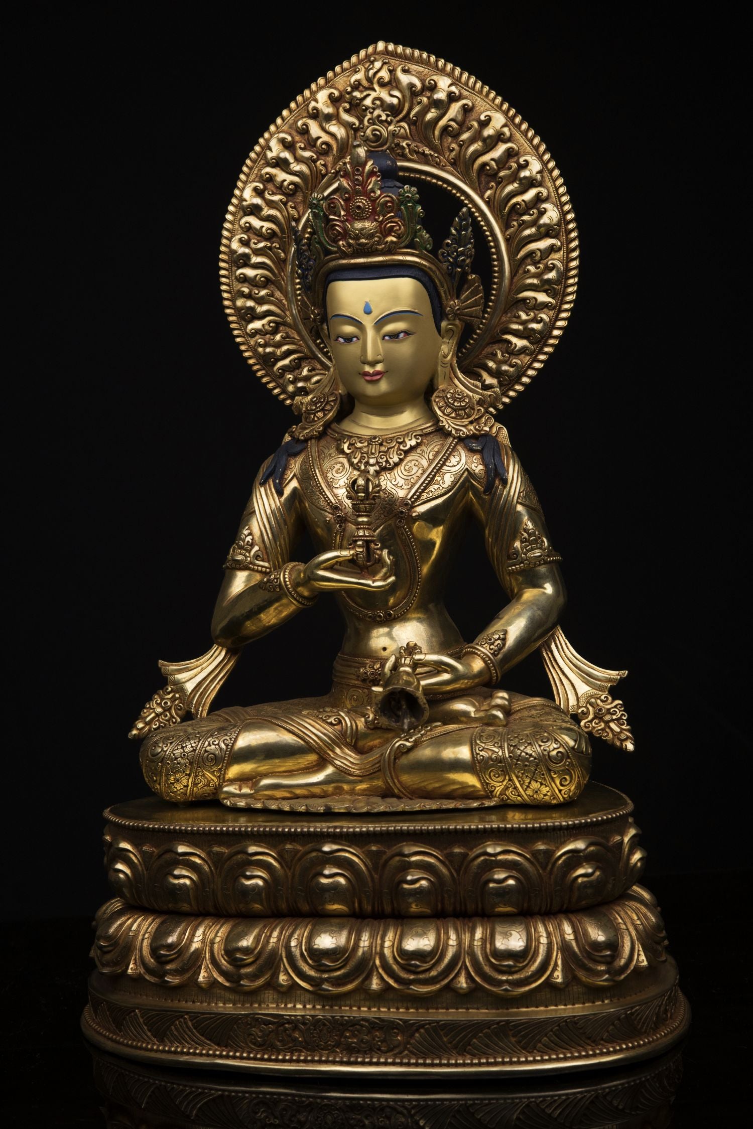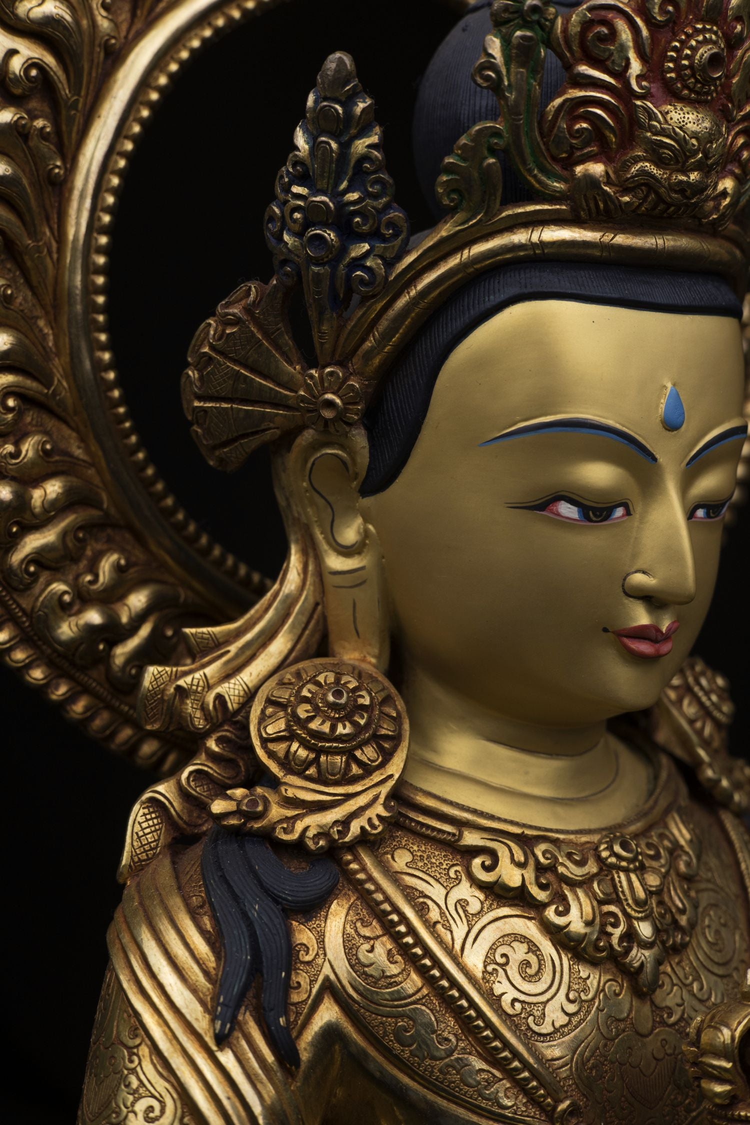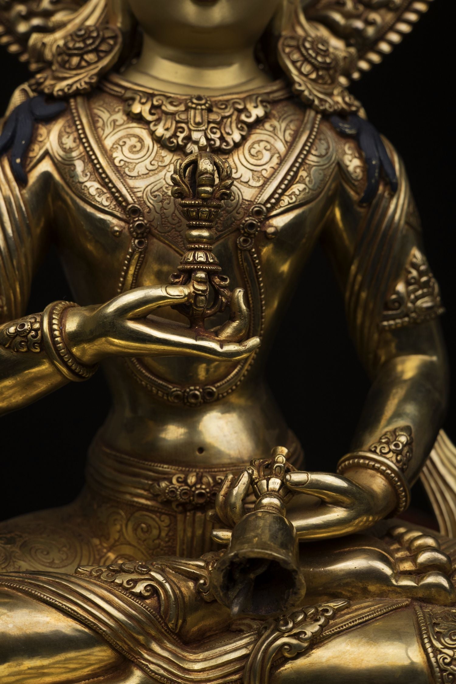 This Beautiful Tibetan Buddhism 24K Gold Face Hand Painting Lord Vajrasattva Gold Plated Full Body Pure Copper Fine Statue made in Nepal.