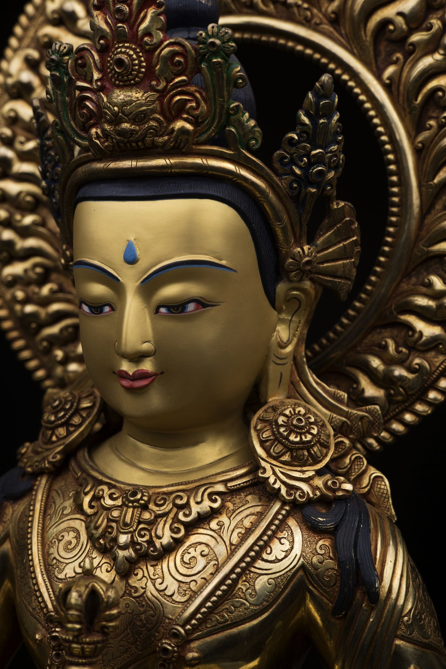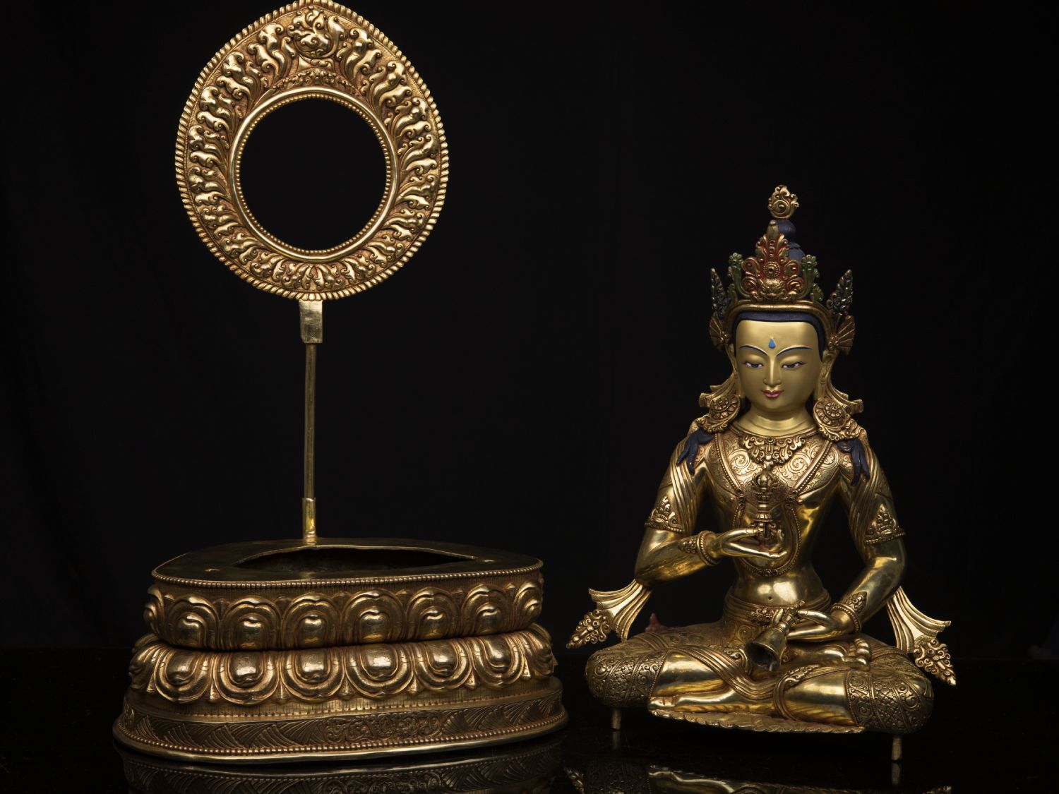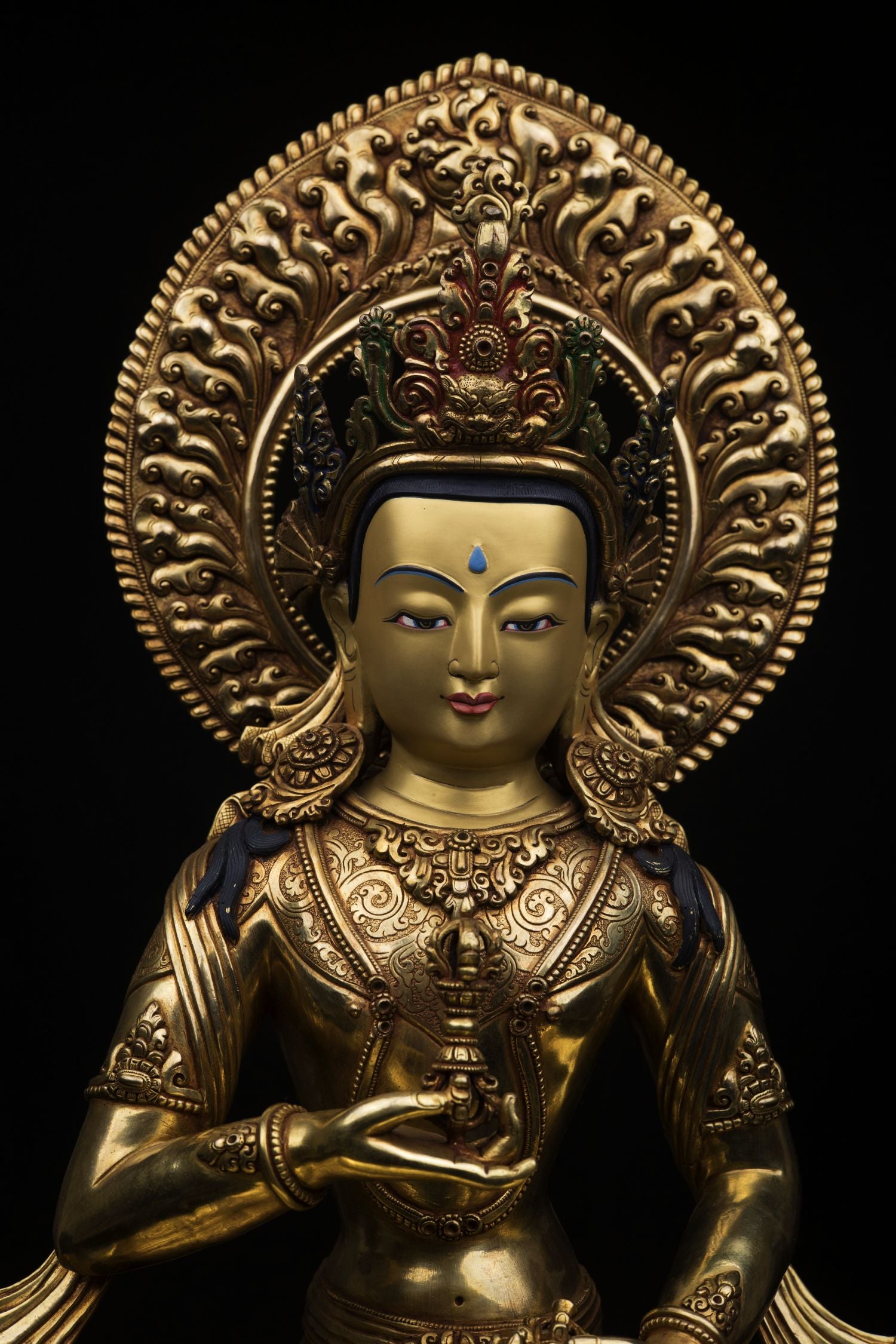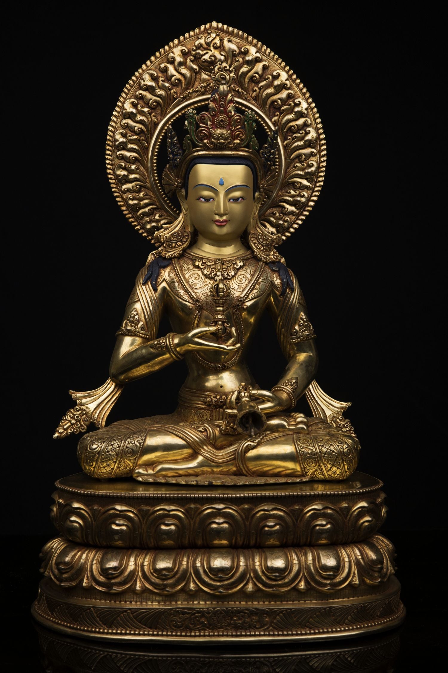This Beautiful Tibetan Buddhism 24K Gold Face Hand Painting Lord Vajrasattva Gold Plated Full Body Pure Copper Fine Statue made in Nepal.