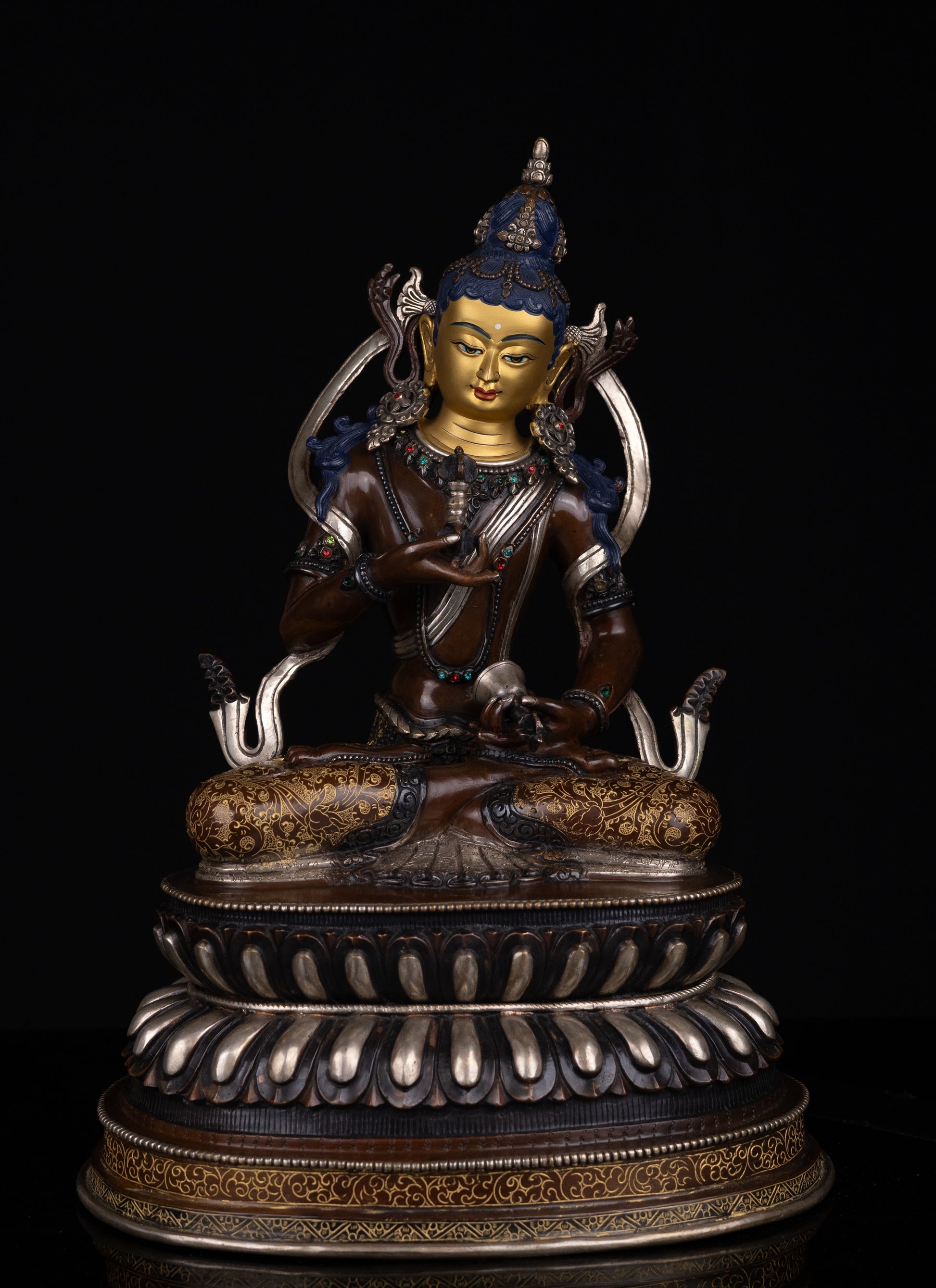 This Beautiful Tibetan Buddhism 24K Gold Face Hand Painting Lord Vajra Sattva Gold Plated Full Body Pure Copper Fine Statue made in Nepal.