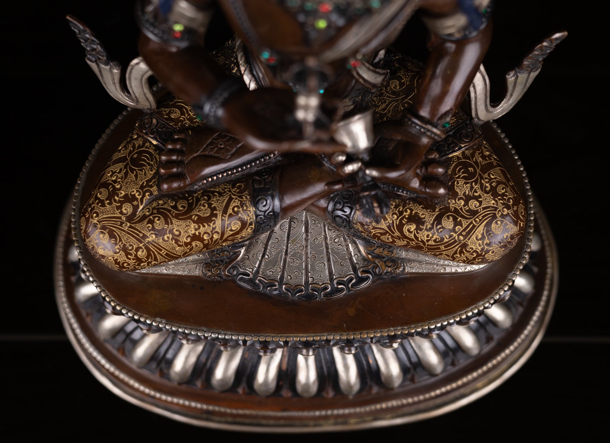 Vajra sattva, the sixth Dhayani Buddha, is regarded by the Nepali Buddhist as the priest of the Five Dhyani Buddha. He is not represented in the stupa like other Dhyani Buddhas, but independent shrines are dedicated to his worship. His worship is always performed in secret and is not open to those who initiated into the mysteries of the Vajrayana. Vajra sattva is represented in two forms, single and Yab-yum. This Dhyani Buddha wears all ornaments, rich dress and a crown. He is of white color. He sits cross legged in the meditative pose like other Dhyani Buddhas. He carries the vajra in his right hand with palm upwards against the chest and ghanta (bell) in the left hand resting upon the left thigh.