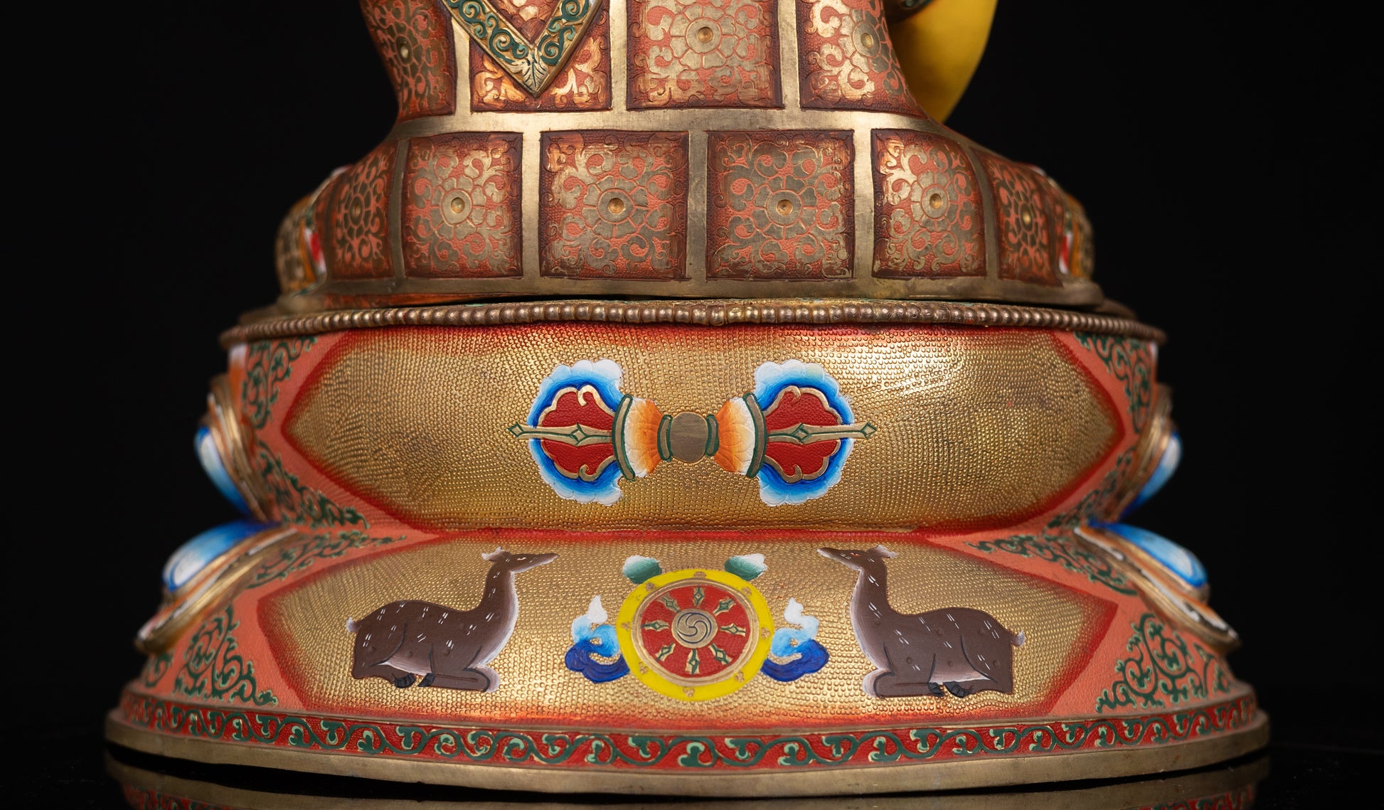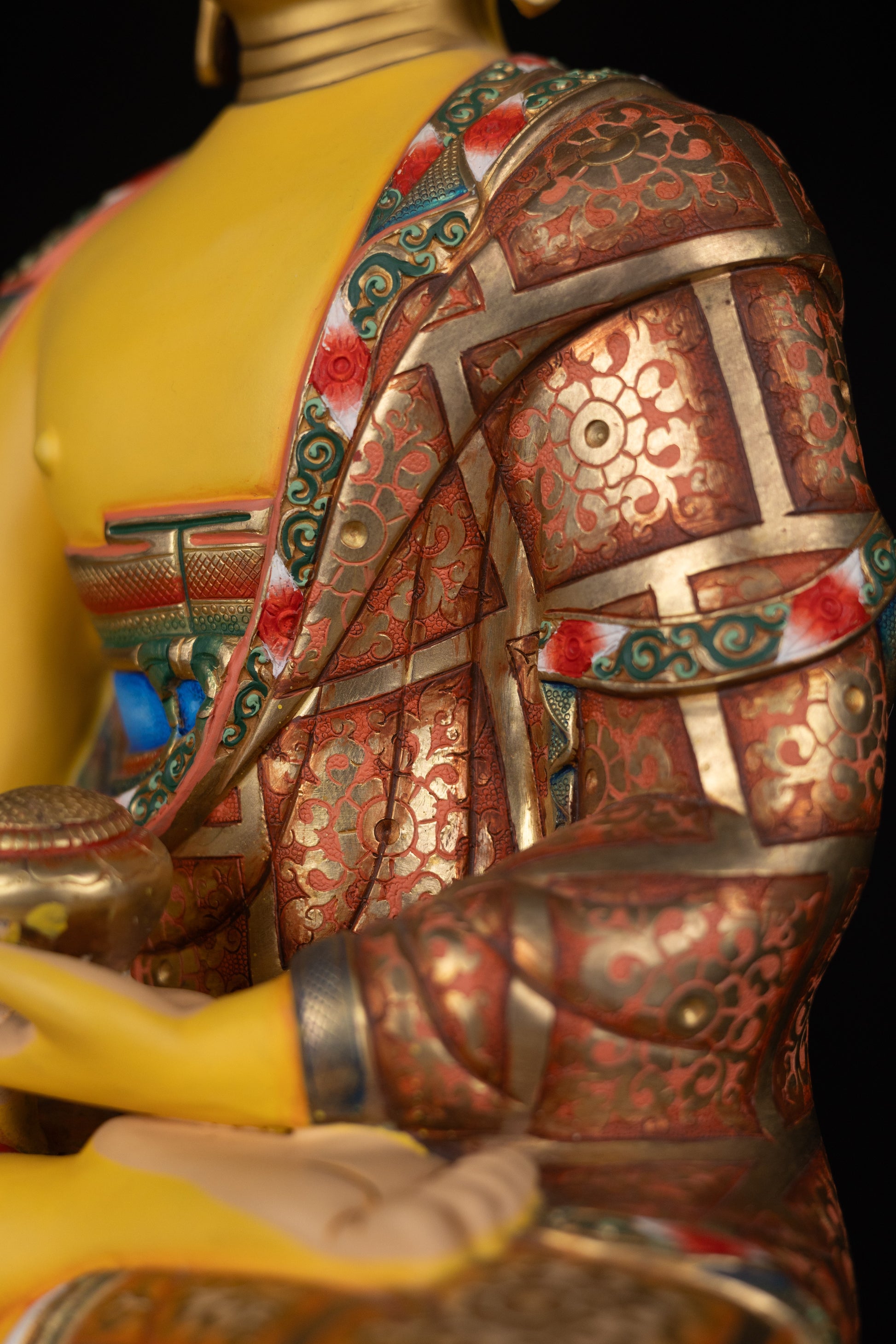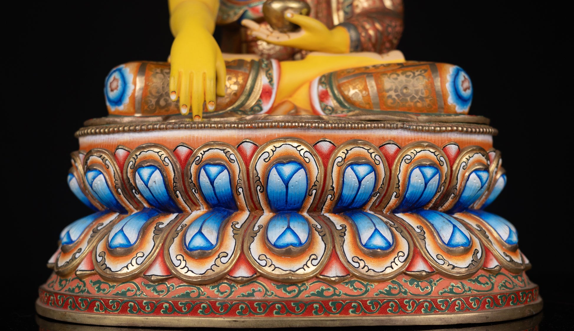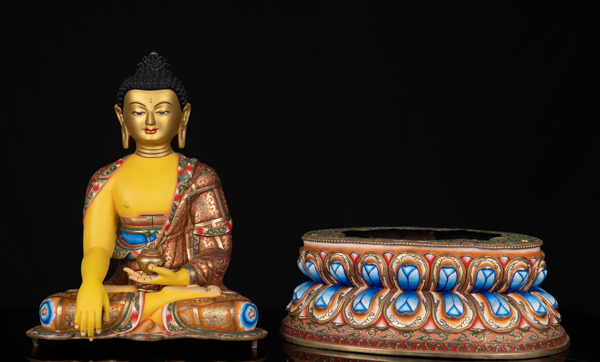 This Beautiful Tibetan Buddhism Gold Face Lord Shakyamuni Buddha Hand Painting Yellow Multi-color Copper Statue Sculpture Figure made in Nepal.