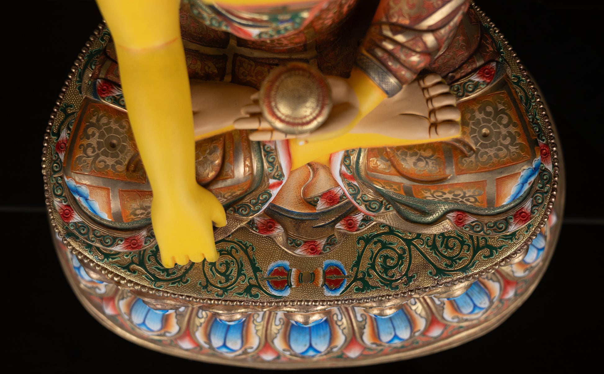 Tibetan Buddhism Gold Face Paint Lord Shakyamuni Buddha Hand Craved Yellow Multi-color Copper Statue Sculpture Figure Nepal free