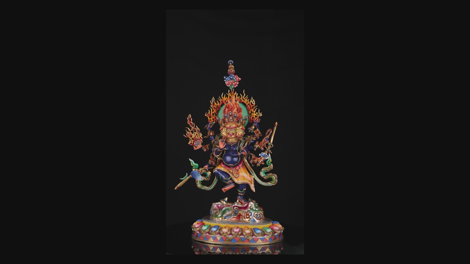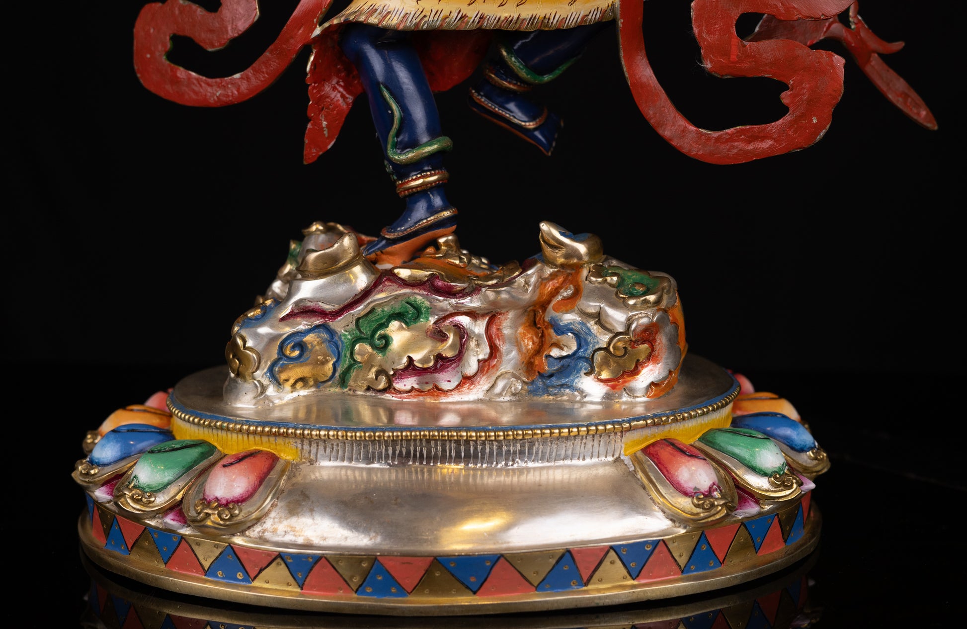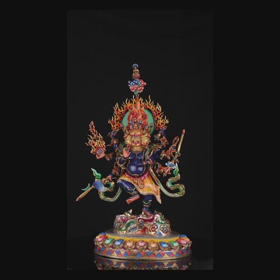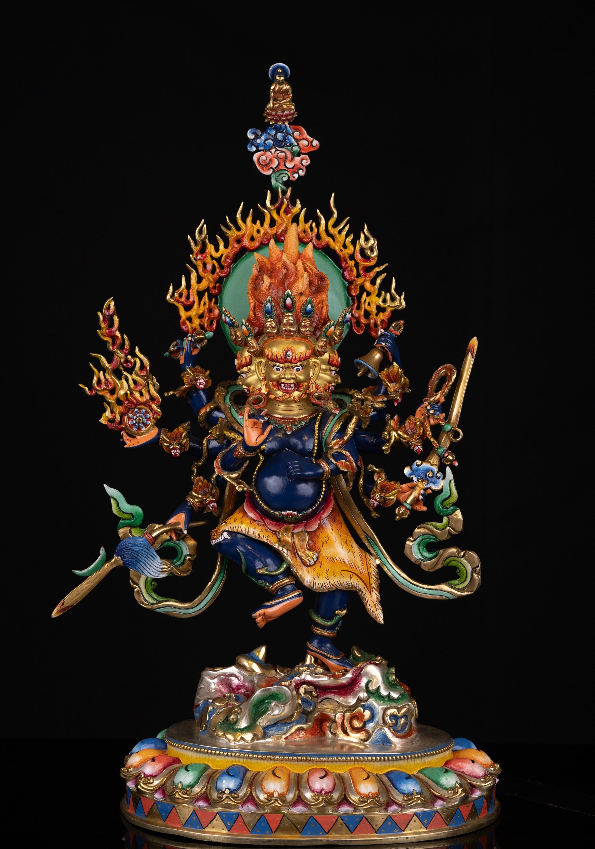 This Beautiful Handmade Hand craved Tibetan Buddhism Wrathful Eight Hand Lord Bhairav Mahakala Multi-color Hand Painting Copper Statue made by Artists of Nepal.