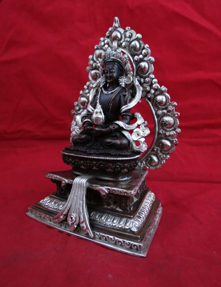 Buddhism Goddess Aparmita Maitreya Amitayus Copper Silver Oxide Statue Sculpture Figure Nepal