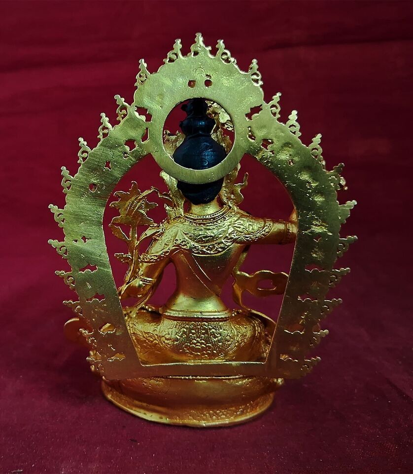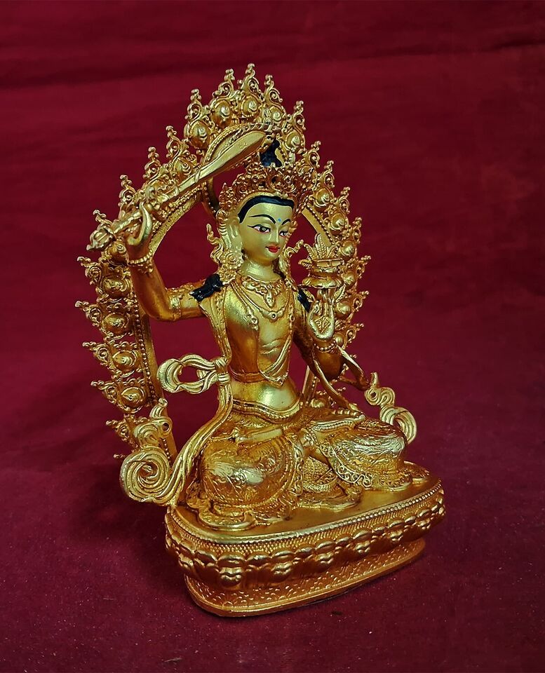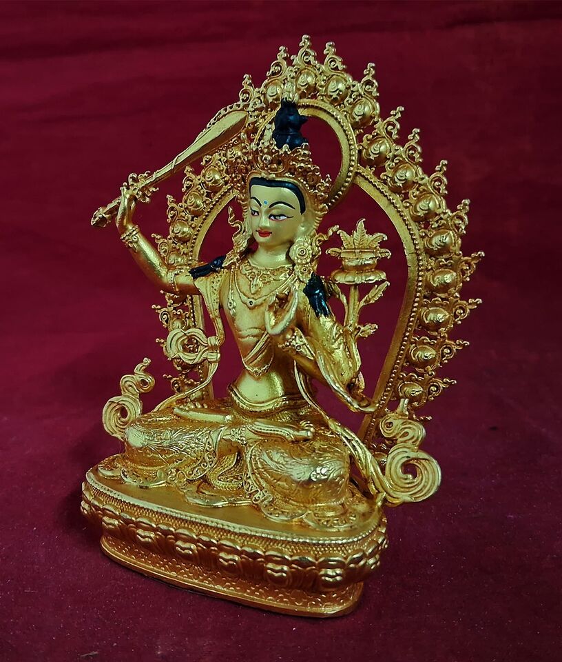 This Beautiful Handmade Gold Face Hand Painting Tibetan Buddhism Lord Maha Manjushri Gold Plated Copper Statue made by Artists of Nepal.