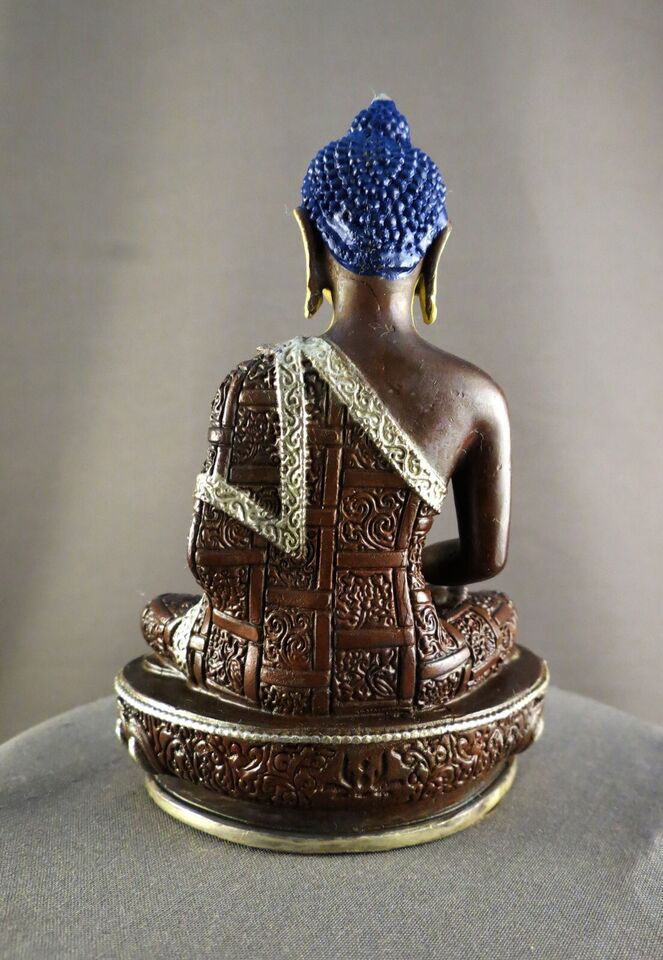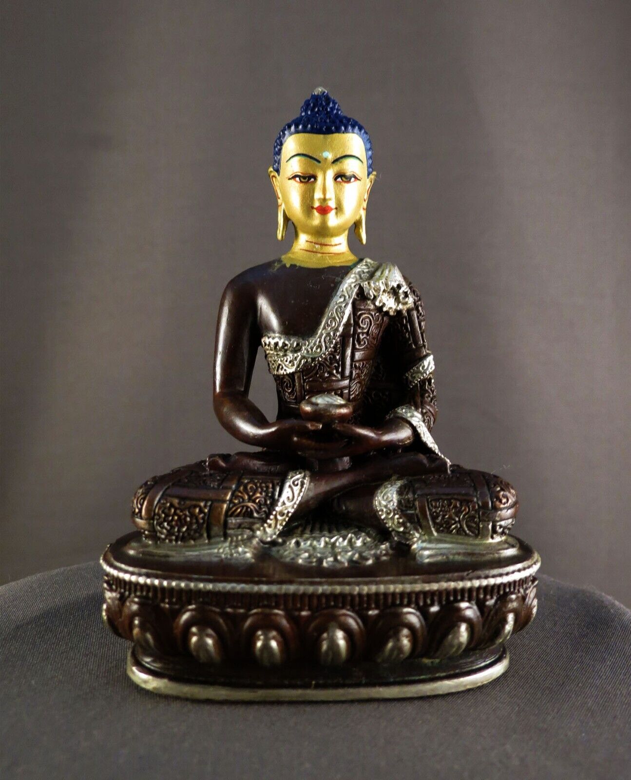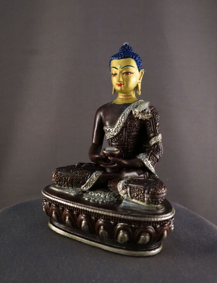This Beautiful Handmade Hand Painting Gold Face Lord Amitabha Buddha Silver Oxide Copper Statue Figure made in Nepal.
