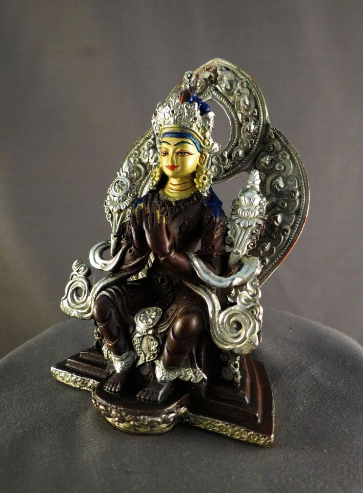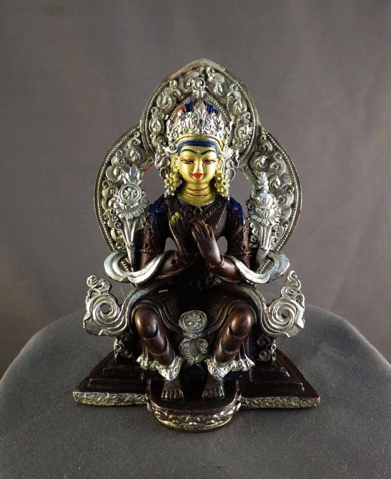 Buddhism Gold Face Hand Painting Lord Maitreya Buddha Silver Oxide Copper Statue Sculpture Figure Nepal