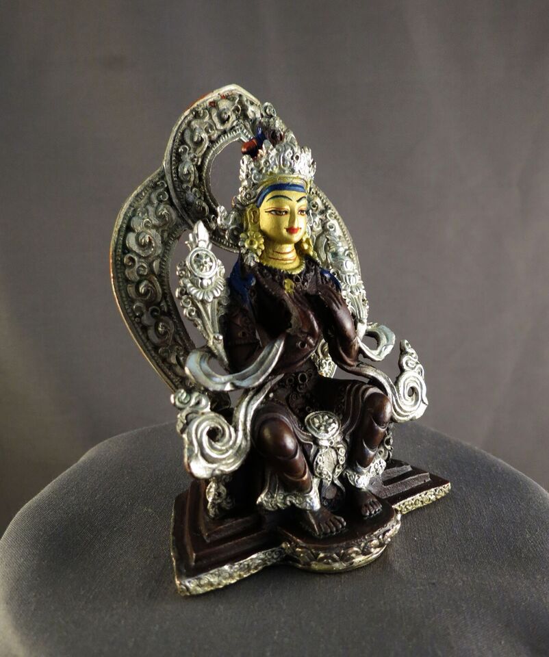 This Beautiful Handmade Buddhism God Maitreya Buddha Gold Face Hand Painting with Silver Oxide Copper Statue made by Artists of Nepal.
