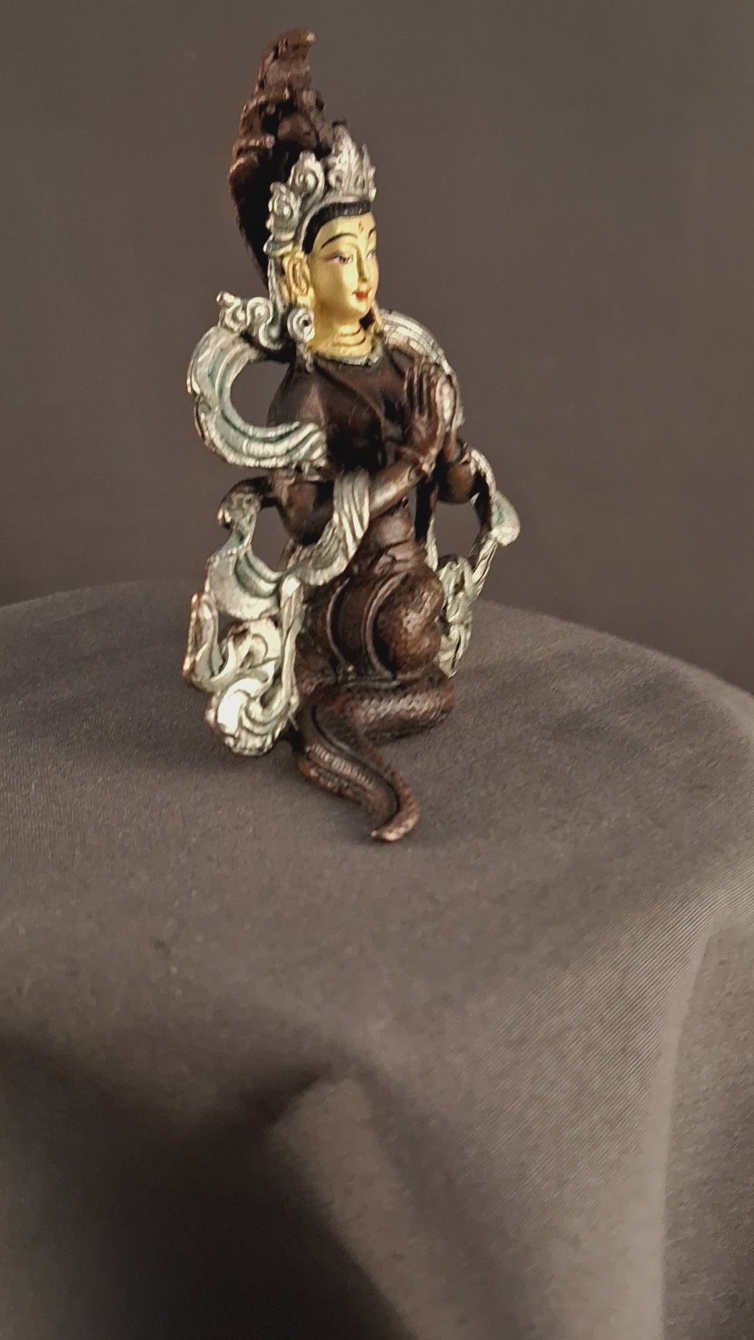 This Beautiful Handmade Snake Gold Face Hand Painting Queen Goddess Naga Kanya Silver Oxide Copper Statue made by Artists of Nepal.