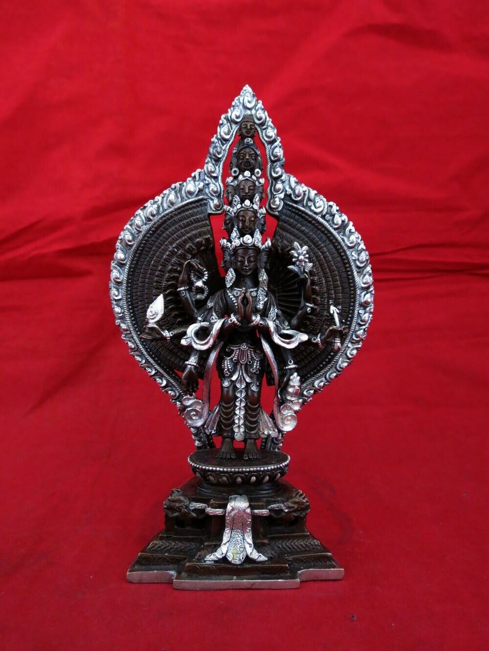Buddhism Thousand Arms Sahasrabhuja Lokeshwor Avalokitesvara Copper Statue Figure Nepal