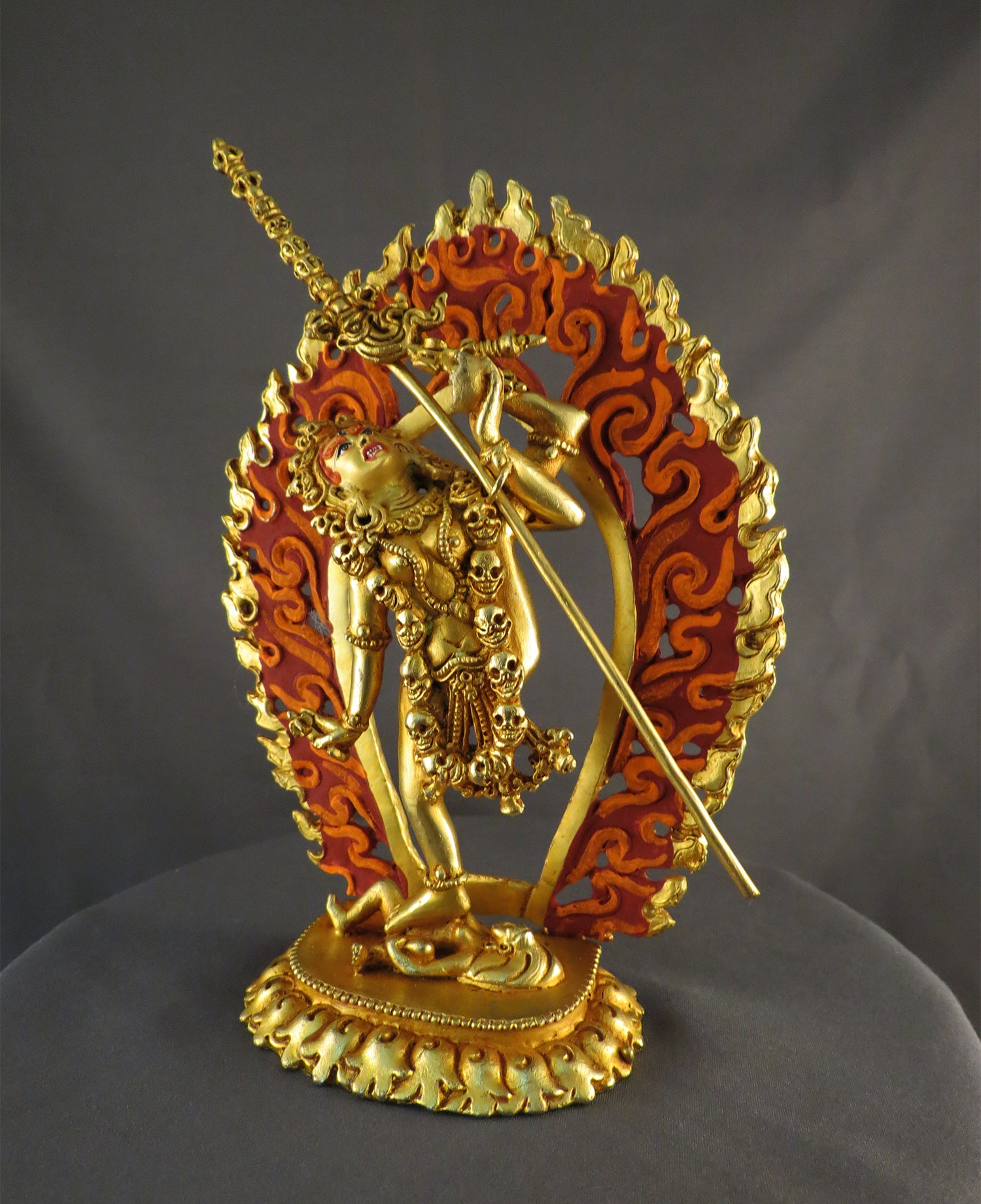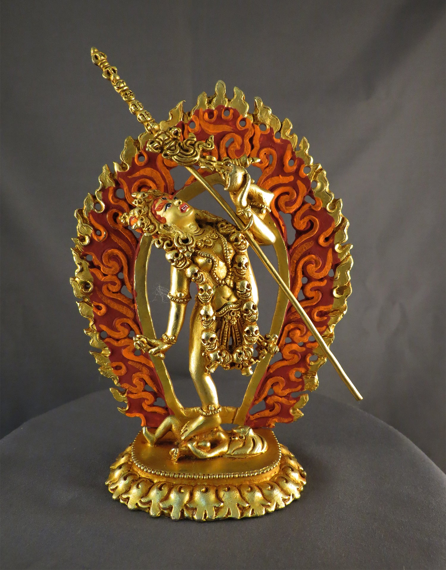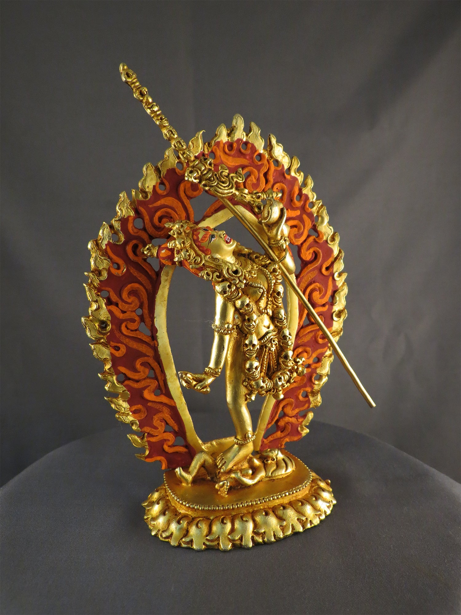 This Beautiful Handmade Hand craved Hand Painting Gold Face Tibetan Buddhism Goddess Akash Yogini Full Body Gold Plated Copper Statue made by Artists of Nepal.