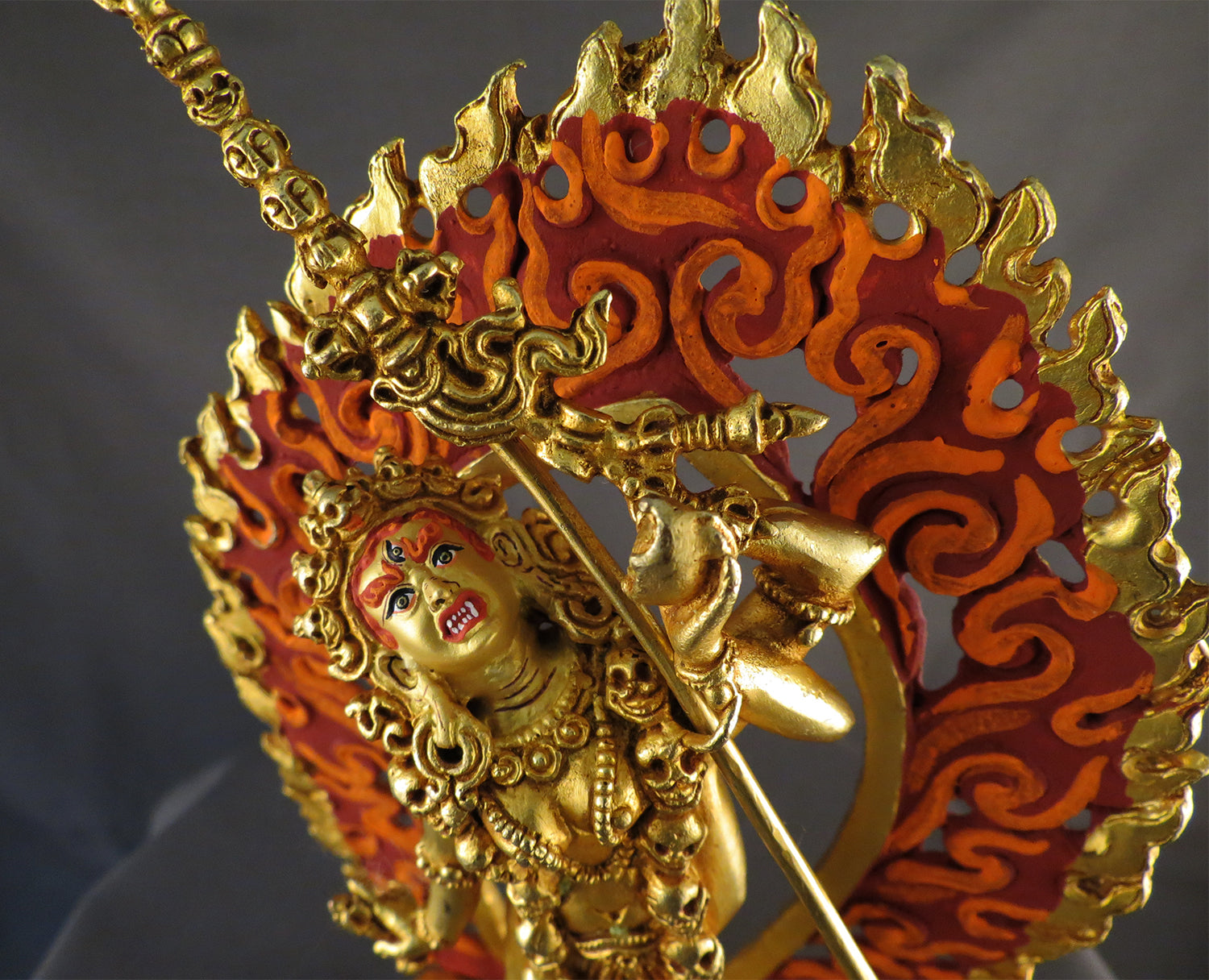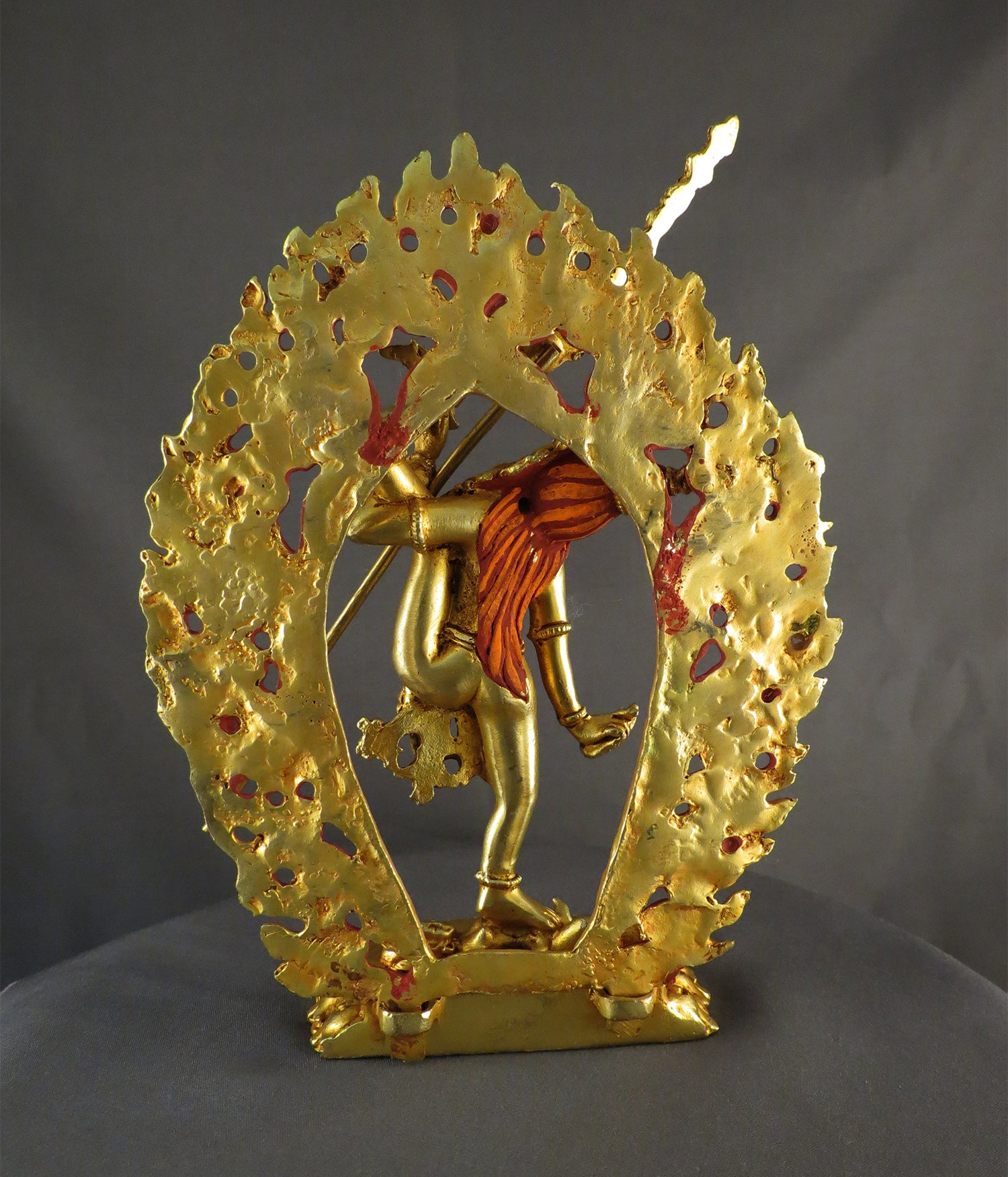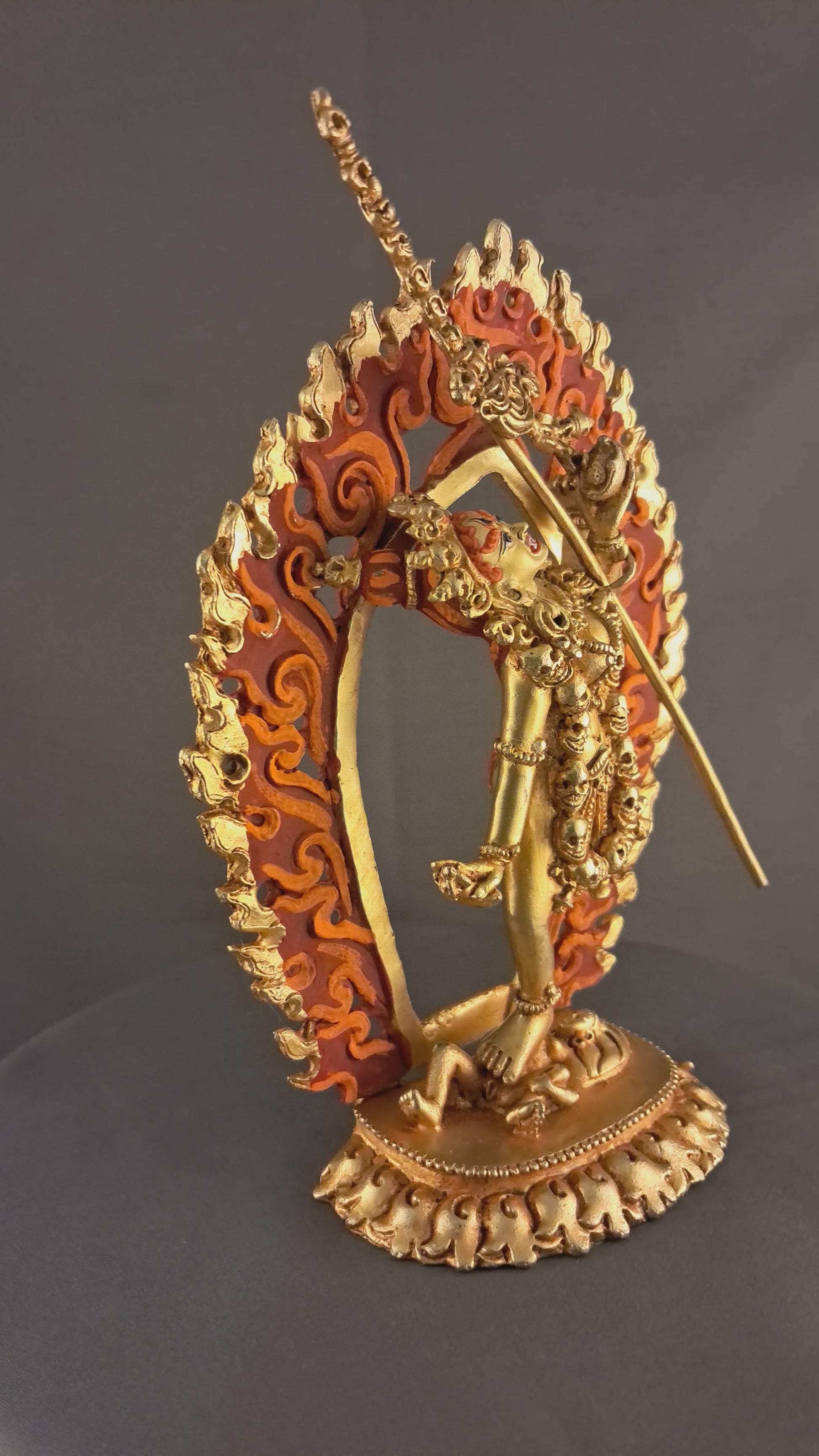 This Beautiful Handmade Hand craved Hand Painting Gold Face Tibetan Buddhism Goddess Akash Yogini Full Body Gold Plated Copper Statue made by Artists of Nepal.